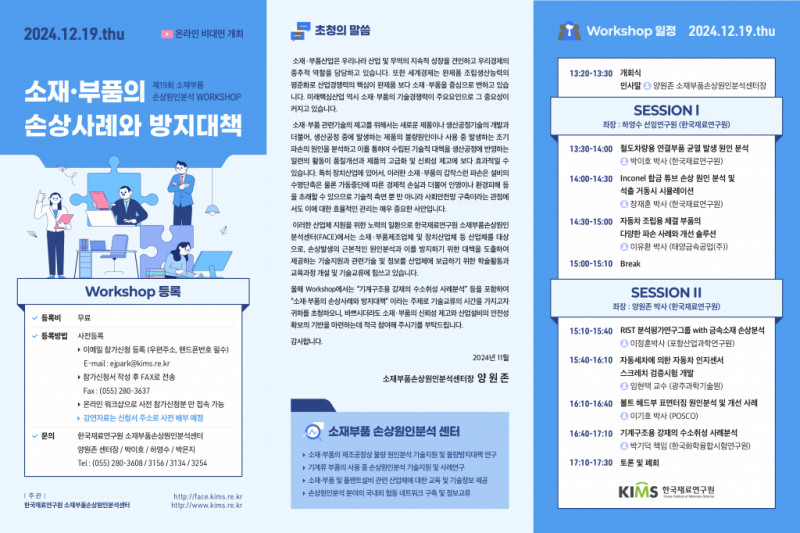 [ 한국재료연구원 소재·부품 손상원인분석워크샵 온라인 개최 안내 ]